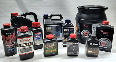 Vihtavuori, ReloadSwiss, Vectan, Nobel Sport, Lovex, Rottweil, Norma, Hodgdon, Ramshot, B&P, Schweizer Schwarzpulver, Wano, PoxEx