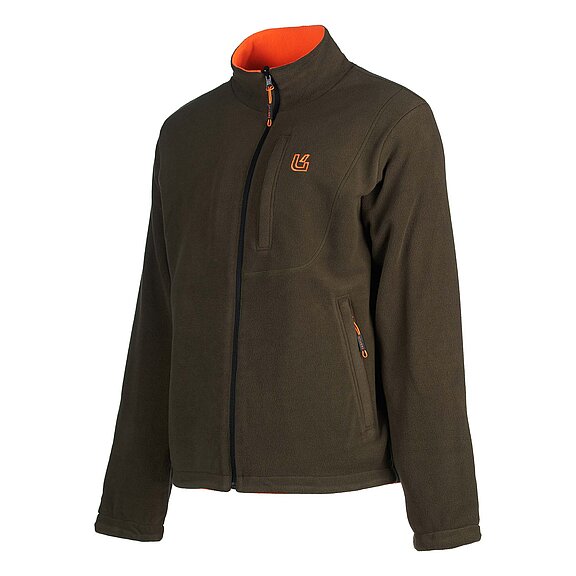 Wende-Fleece in Grün-Orange, Reißverschlusstaschen